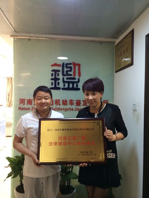 4月18日上午,河南交通广播法律援助中心成立暨顾问单位授牌仪式在郑州成功举行。这标志着河南首家广播媒体法律援助中心正式诞生,它将为交通事故中的受害者提供紧急医疗救助,车辆技术鉴定,法律诉讼援助。河南交通广播总监助理、《南方谈交通》节目主持人南方5月13日为我公司颁发了“河南交通广播法律援助中心顾问单位”铜牌及聘书。