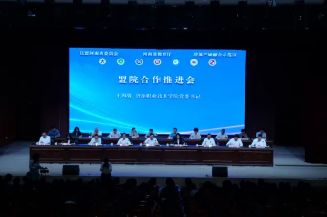 9月29日,谢经荣出席盟院合作推进会并讲话,对民盟河南省委会长期对口帮扶济源职业技术学院取得的突出成就给予充分肯定。他指出,“盟院合作”开展以来,合作领域不断扩大,参与单位不断增加,真正形成了“361+n”的合作模式。民盟中央将认真落实丁仲礼主席对“盟院合作”“盟济合作”工作的指示精神,全力支持民盟河南省委会把“盟济合作”“盟院合作”打造成全盟社会服务工作的典范和品牌,把济源职业技术学院办的更好,培养出更多爱国敬业、技术精湛的能工巧匠,为中国式现代化高质量发展作出新贡献。