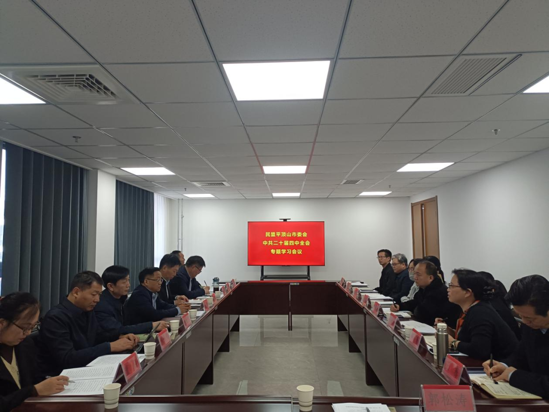 11月11日,民盟平顶山市委会召开专题学习会议,集中学习了中共二十届四中全会精神、中共中央党外人士座谈会精神及民盟河南省委会十四届十次常委(扩大)会议精神。平顶山市政协副主席、民盟平顶山市委会主委王著出席会议,市委会专职副主委关永可主持会议。市委会副主委马爱锄、杜富强,市委委员,各专委会主任,书画院与艺术团负责同志及内部监督委员会主任、副主任等二十人参会。
